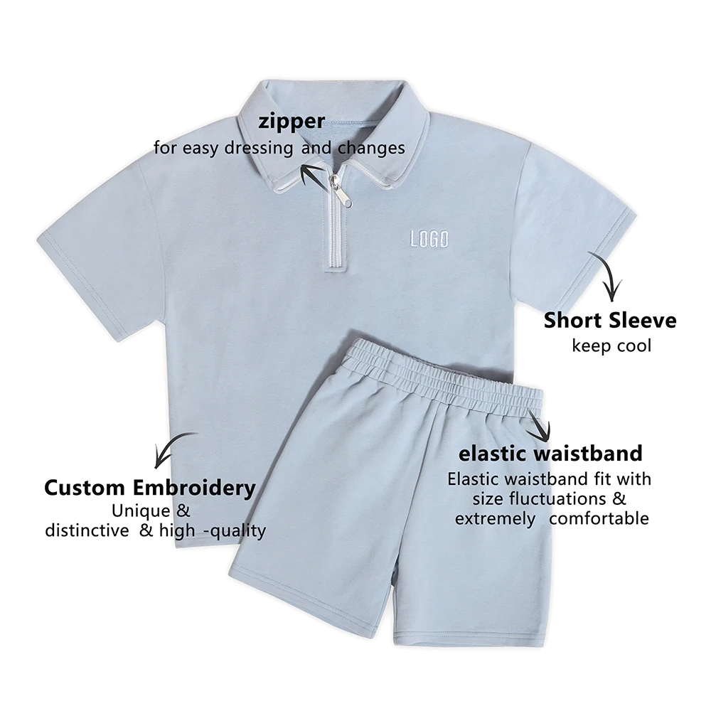 New Designer Cropped Zip up Hoodie Baby Boy Solid Color Zipper Elastic Waistband Short Sleeves Children's Clothing Set